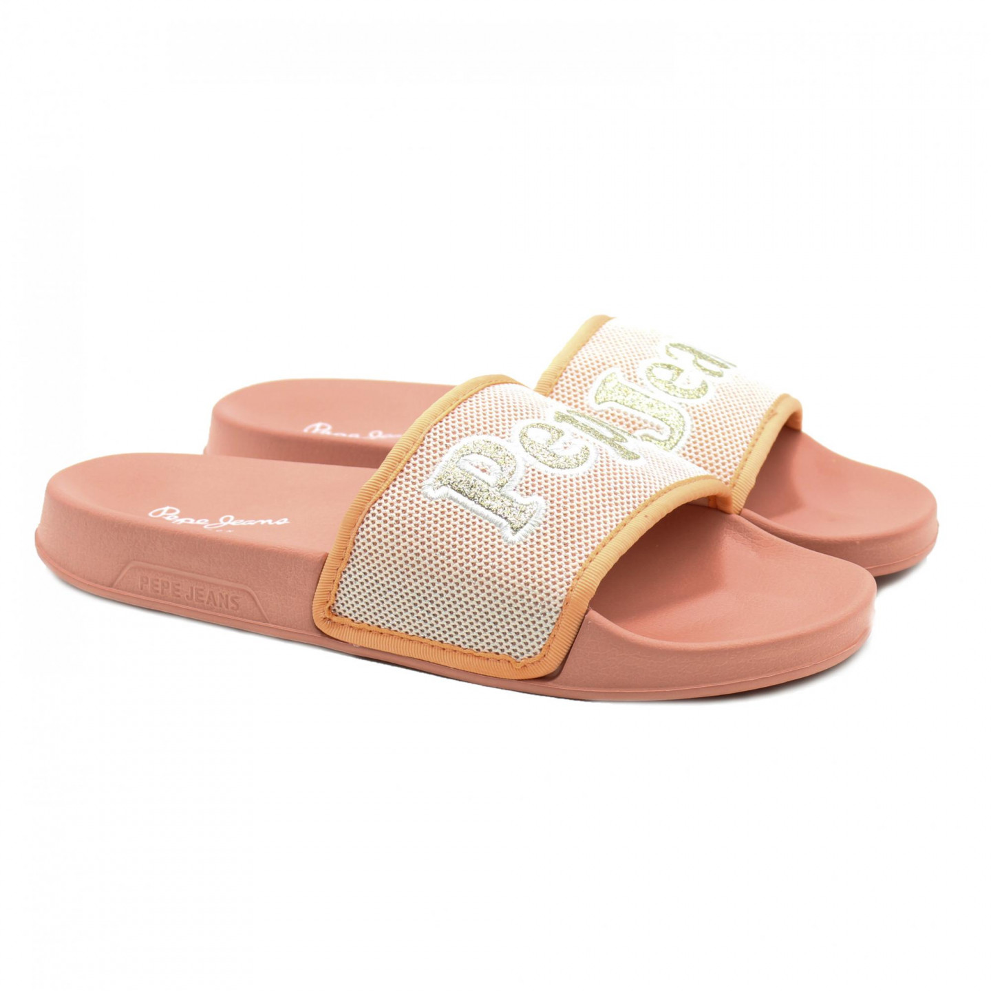 Stylové dámské korálové pantofle zdobí zlatý nápis Pepe Jeans.