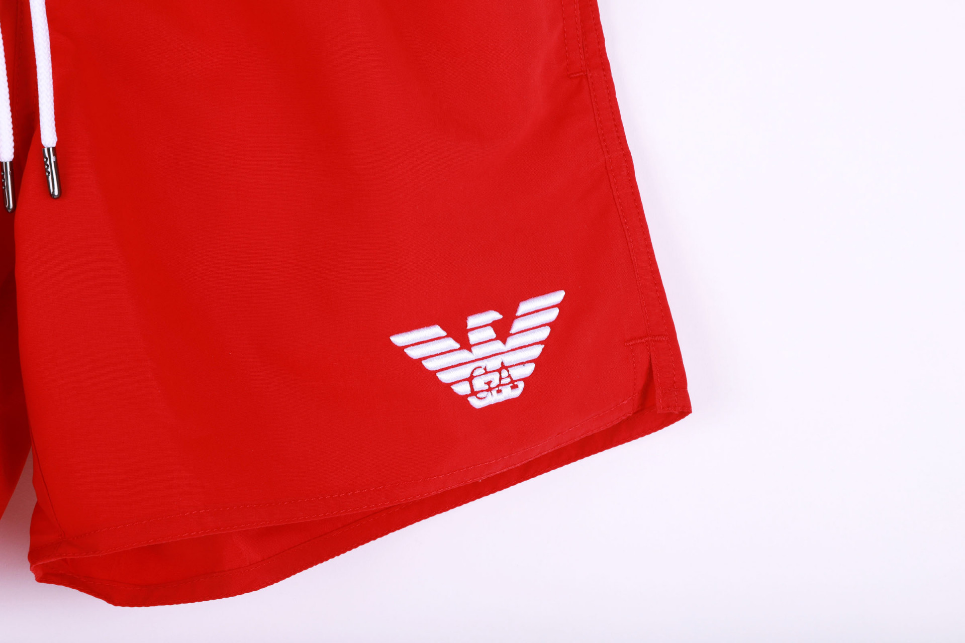Pánské červené plavky značky Emporio Armani. Plavky zdobí elastický  pas, vnitřní podšívka ze síťoviny a logo značky.