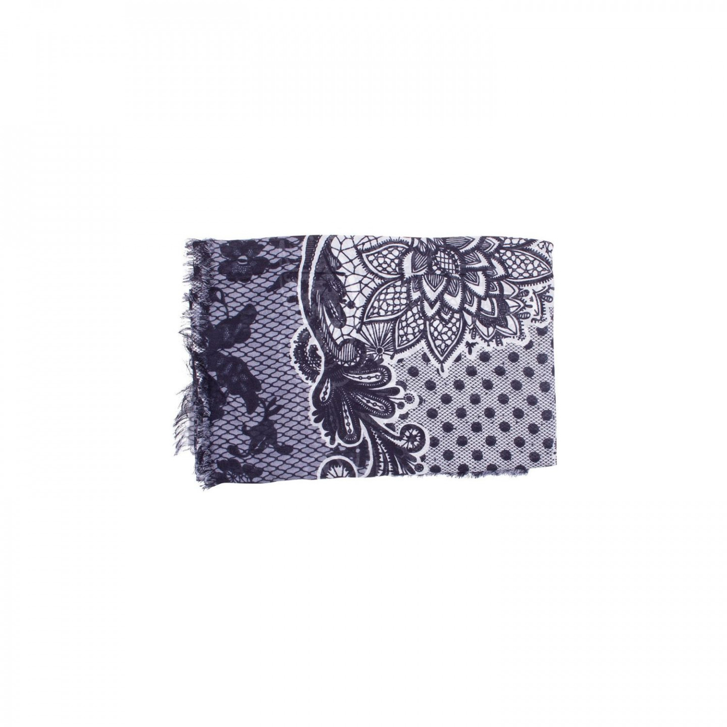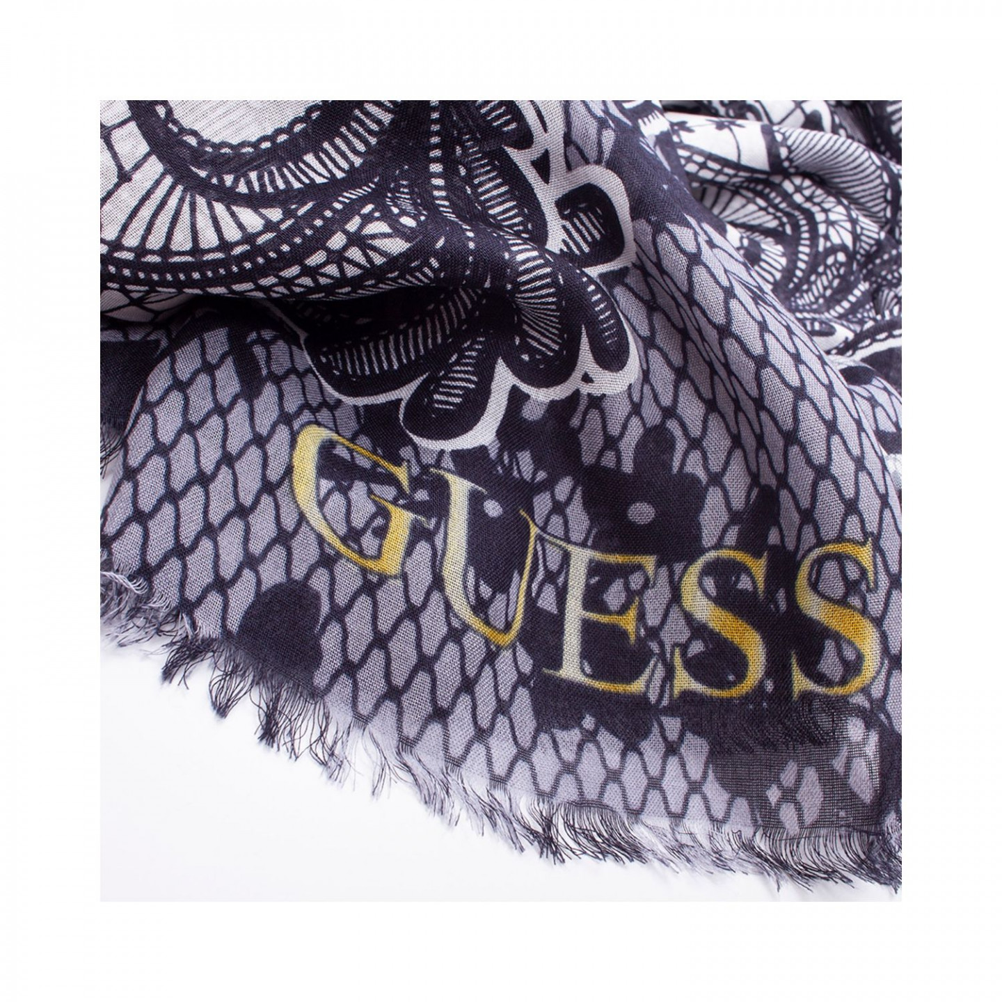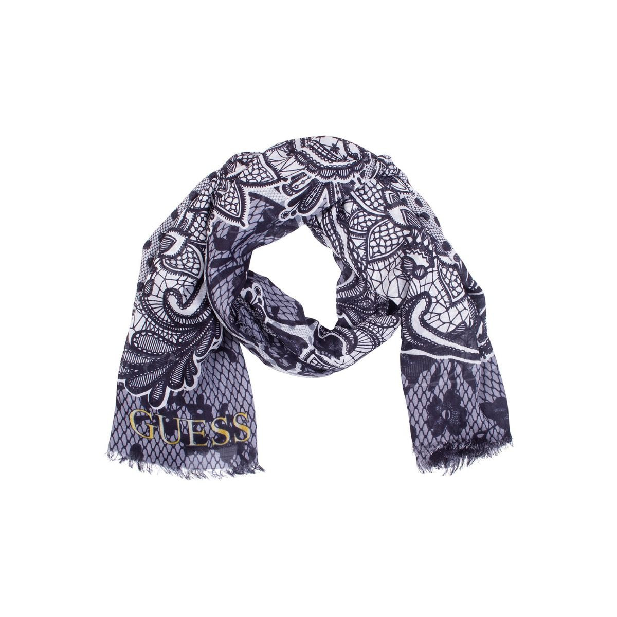 Dámský černý šátek značky GUESS zdobí roztřepené lemování.