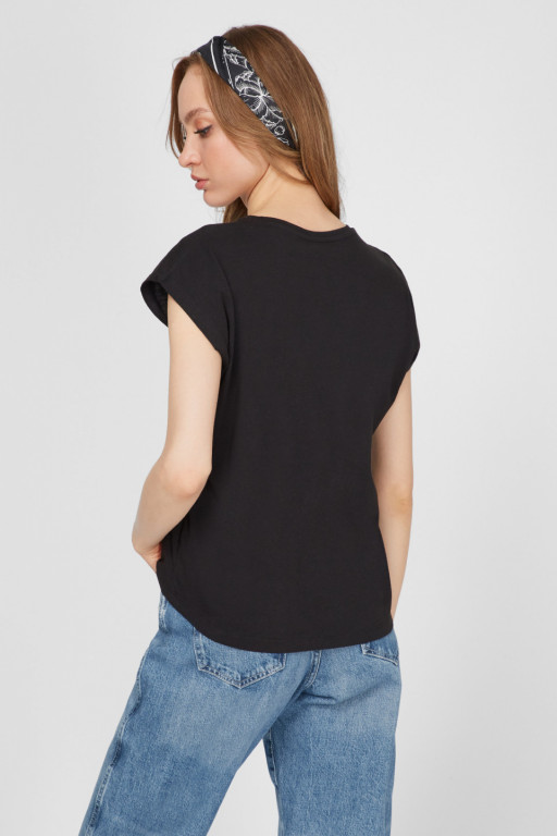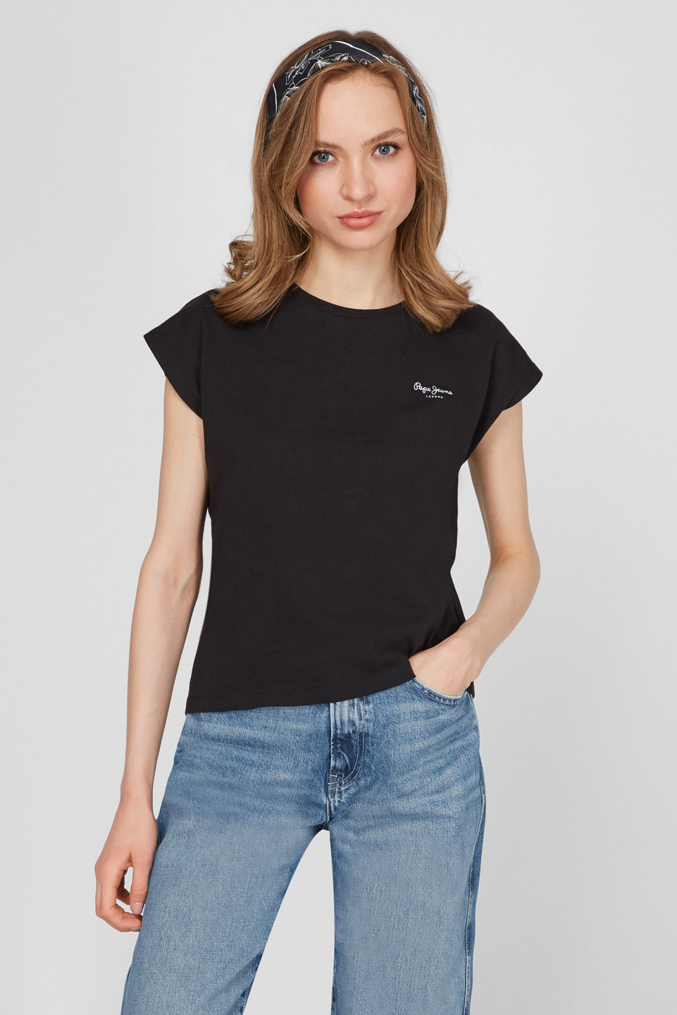 Dámské černé tričko značky Pepe Jeans. Tričko zdobí bílý nápis Pepe Jeans a kratší rukáv.